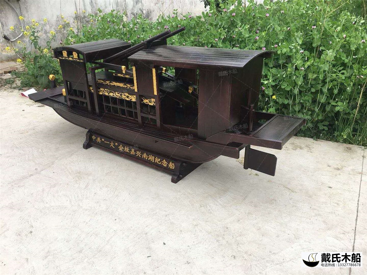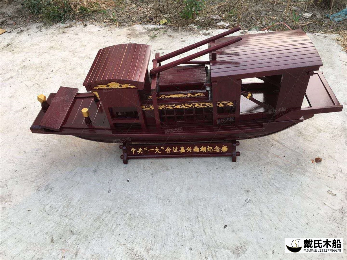 红色文化馆定制4米红船模型 木质仿古红船